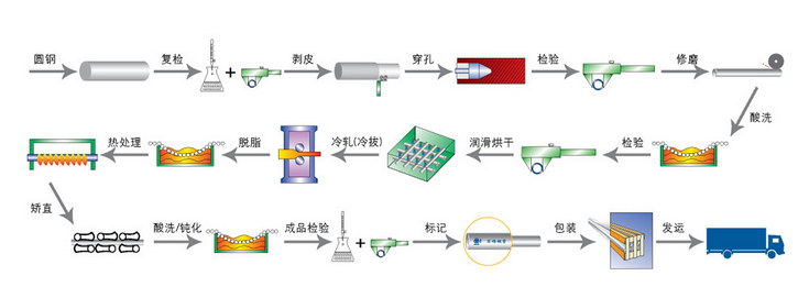 不銹鋼和鎳合金無(wú)縫管生產(chǎn)工藝流程圖
